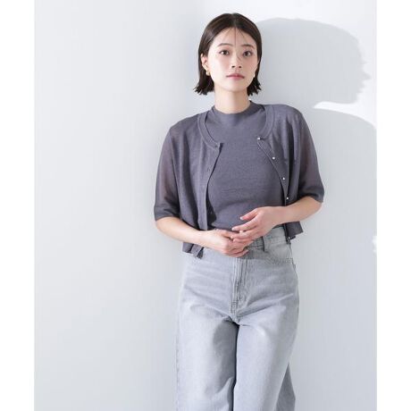 さりげないシアー感があるカーディガンとリブインナーのセットです。カーディガンはコロンとしたゴールドカラーの釦が女性らしいアクセント。コンパクトながらも程よいゆるっと感があり、ラフな雰囲気をプラスしながら、スタイルアップも叶います。それぞれ単品使いもしやすいデザインなので、コーディネートの幅が広がります。<素材>カーディガンは軽やかでさりげないキラッと感とシアー感のある天竺素材、インナーは透け感のないしっかりとしたリブニットを使用しています。<詳細>仕様・前ボタン裏地・なし透け感・ややあり / 光沢・ややあり / 伸縮性・あり生地の厚さ・普通※モデルの着用画像の場合、光の当たり具合により、実際の色味と異なって見えることがございます。色味は、商品単体の画像をご参照ください。