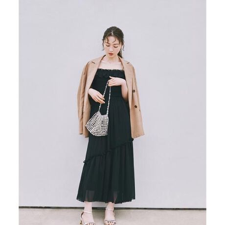 フリルシャーリングキャミワンピース