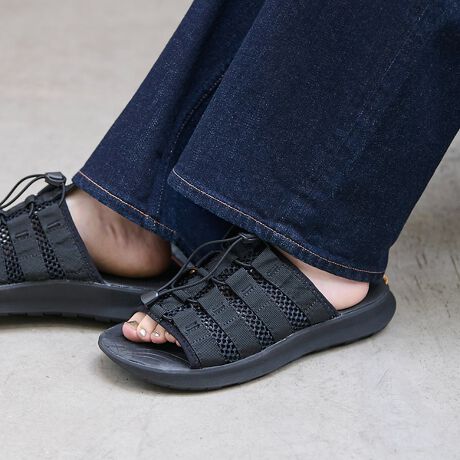 『バンピーパッカブル』は、サイズ調整用のドローコードを使ってワンタッチでコンパクトにできるリカバリーサンダルです。