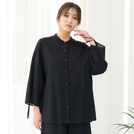 ■暑い夏に着心地抜群の、ミラクルウェーブスタンドカラーブラウス■