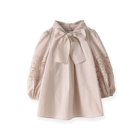 袖にオリジナルの繊細なレースをたたきつけた上品なブラウス。