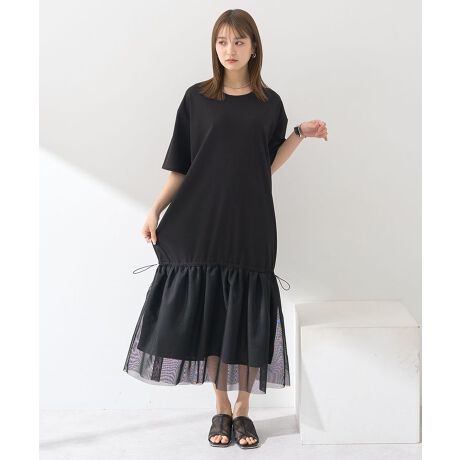 接触冷感性のある素材で仕立てたデザインワンピース。裾にメッシュ生地をドッキングし、ドロストコードを調節してお好きなシルエットに変えられます。吸水速乾性があり、暑い季節でも快適な着心地なのも嬉しいポイント。シンプルに着合わせるだけでスタイリングが完成するおすすめのアイテムです。透け感[ややあり]