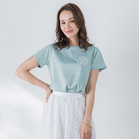 エンブレム風のロゴ刺繍が上品なワンポイント刺繍Tシャツ。