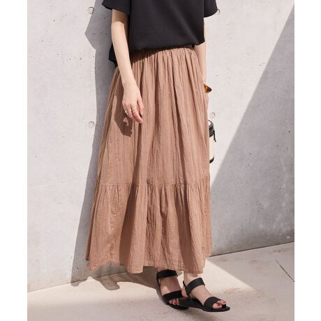 コットン ティアードスカート ボイルリンクル加工 春夏 着回し ナチュラル フレア ボトムス スカート 30代 40代 レディース カジュアル 春夏 25SS AMERICAN HOLIC AMERICAN HOLIC アメリカンホリック アメホリ
