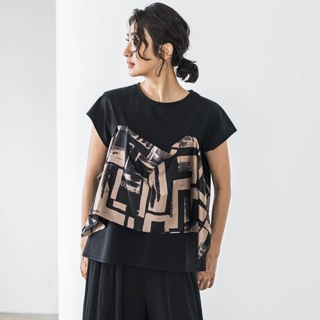【WEB限定】配色スカーフプリントカットソー≪洗濯機で洗える≫
