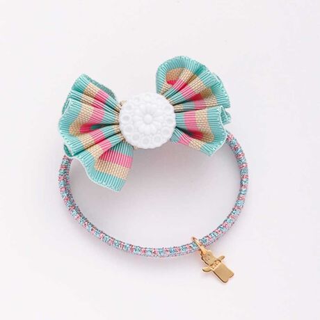 [型番:7121-0001t]色鮮やかなリボンテープに繊細な白ボタンをあしらったヘアゴムです。ポニーテールやお団子ヘアもちょっと差がつくアレンジに★