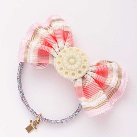 [型番:7121-0001t]色鮮やかなリボンテープに繊細な白ボタンをあしらったヘアゴムです。ポニーテールやお団子ヘアもちょっと差がつくアレンジに★