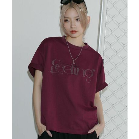・フロントにきらきらと輝くラインストーンロゴがポイントのTシャツ。