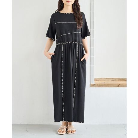 配色メロウと立体感のあるデザインシームが、『一枚で可愛い』を叶えるロングワンピース。