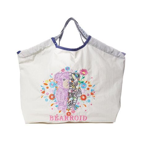 テープ刺繍のバッグにベアロイドがお花を持ったデザインが新しく仲間入り。