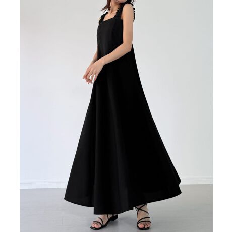 フリルショルダーフレアキャミワンピース(薄手、裏地無し)