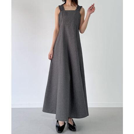 フリルショルダーフレアキャミワンピース(薄手、裏地無し)
