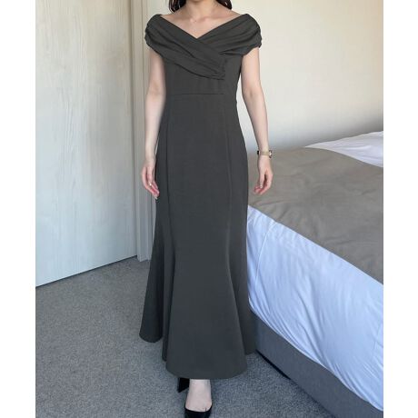 カシュクールデザインマーメイドワンピース(薄手、スカート裏地無し)