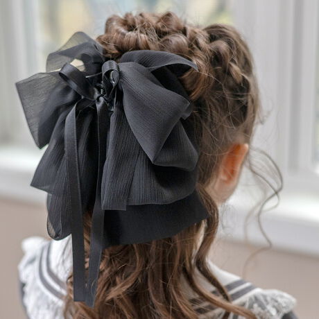 クリップの中央には同色のリボンをつけて、フェミニンな印象に。