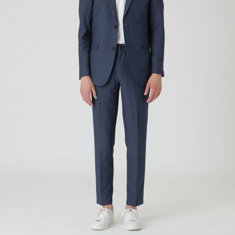 軽量シアサッカー素材を使用したトラウザーズです。シャープな印象を持たせる細身のシルエットながらも、ウエスト部分にはゴムシャーリングを施し快適な履き心地を実現しています。カジュアルからビジネスまで幅広く活躍するベーシックなデザインです。