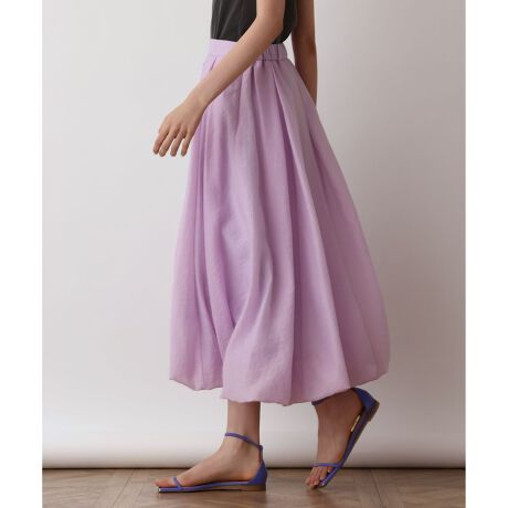 ナチュラルなムード漂う、シアーオーガン地でお作りしたバルーンスカート。ややマットな質感で、少しワッシャーもかかったような美しいオーガン素材を使用。ややハリのある素材を活かし、大きくタックを取って裾でバルーンを作ったフレアシルエット。深めのタックにすることでお腹周りはすっきりとさせつつ、裾にふんわりとした華やかさを出しています。清涼感溢れるホワイトと、夏のシンプルになりがちなスタイリングに華やかさを演出する綺麗な発色のパープル&イエローの3色をご用意しました。お揃いのシャツとセットで着る事で、シーズンらしい涼やかななスタイリングをお楽しみいただけます。