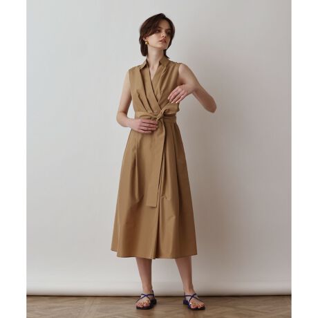 【Japan Fabric】ふわっと軽いトリアセコットンシャツ地でお作りしたカシュクールシャツワンピース。 タフタの様な微光沢があり、高級感溢れるメイドインジャパンの素材を活かしたシンプルなデザインです。大人な雰囲気を持つカシュクール仕立てにシャツ衿を付けて、甘くなりすぎないシャープな雰囲気を楽しめる一枚に。様々な体系の方がスタイルアップになるようバックゴム&ウエストリボンでメリハリをつけつつ、裾に向かって広がる美しいシルエットを実現しました。単調になり過ぎない女性らしいディティールが、一枚で上品に着映えます。シックな装いを楽しめるブラックとカーキに加え、発色が綺麗なラベンダーの3色展開です。