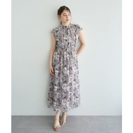 シアージャガード素材にオリジナルのフラワー柄をプリントした上品なワンピース。