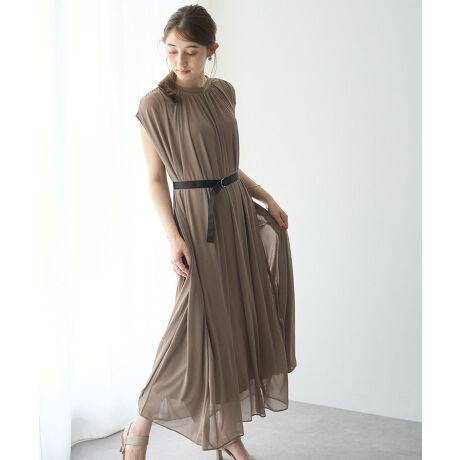 ストレッチチュールを使用したエレガントなギャザーワンピース。