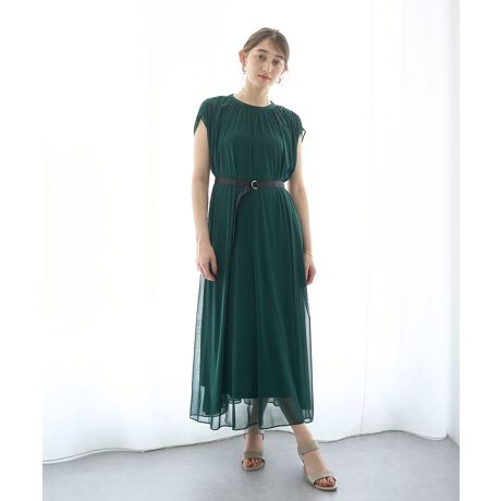 ストレッチチュールを使用したエレガントなギャザーワンピース。