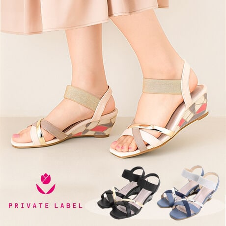 【25春夏新作】PRIVATE LABEL ステンドグラス ウェッジソール ゴムバンド サンダル