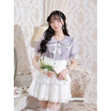 レースをあしらった丸襟のデザインで、ガーリーなムードを放ちます。