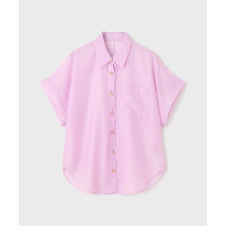 ナチュラルなムード漂う、シアーオーガン地でお作りしたドルマンシルエットシャツ。ややマットな質感で、少しワッシャーもかかったような美しいオーガン素材を使用。ゆったりとしたドルマンスリーブは、身体から離れるため通気性が良く、汗ばむ季節でも快適です。少し肩にかかるくらいの袖丈は気になる肩や二の腕も隠れる為、ボタンを閉めてブラウス感覚で着ても可愛いですが、サマードレスの上から羽織ったり、タンクトップやベアトップに合わせたり、真夏の軽い羽織りとして重宝。お揃いのスカートとセットで着る事で、新鮮なスタイリングもお楽しみいただけます。清涼感溢れるホワイトと、夏のシンプルになりがちなスタイリングに華やかさを演出する綺麗な発色のパープルやイエローの3色をご用意しました。