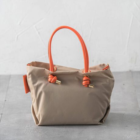 春頃からずっと買おうか悩んでましたがタイムセールが来たので購入。軽いカバンを探してたので実際届いて持って見て軽さに満足。生地はナイロンですが持ち手は皮でチープさを感じないのが良かったです。オレンジの持ち手がアクセントになって良いです。