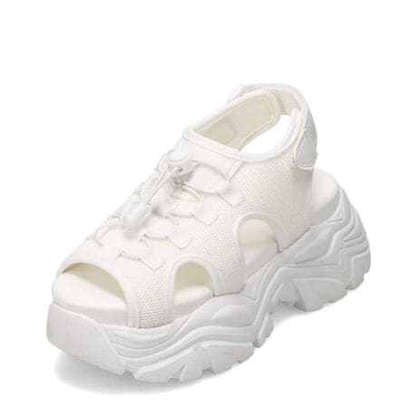 スニーカーのように楽な履き心地の厚底サンダル。