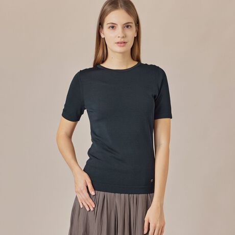 適度なフィット感でスッキリ見えるシルエットのニットプルオーバーです。光沢感のある素材感でコーディネートのポイントになります。単品としても同素材のカーディガン(品番:G5N61598)とアンサンブルとしても着用いただけます。