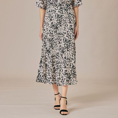 長めの着丈でエレガントな雰囲気のアコーディオンプリーツスカートです。裾に向かってプリーツを消したやさしいシルエットです。ベーシックなTシャツやニットに合わせて頂くのはもちろん、同素材のブラウス(G5M65587)とセットアップで着用いただくのもおすすめです。バックウエストはゴム仕様で裏地付きです。また、同素材のワンピース(G5J63587)もご用意しております。
