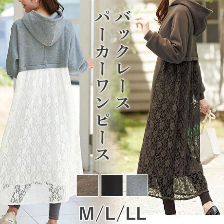 ワンピース パーカー 長袖 レディース レース 961816 通販 ロングワンピース ロングワンピ ワンピ レディースワンピース パーカーワンピース 長袖ワンピース ロング ロング丈 裏起毛 きれいめ ゆったり 体型カバー カジュアル おしゃれ オシャレ