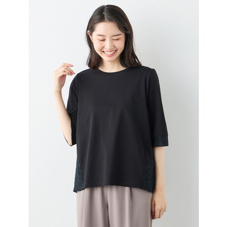 サラッと感触で蒸し暑い季節に最適。袖口、裾のレース使いもフェミニン。ゆったりめのサイズ感で体の線を拾わずに嬉しい。