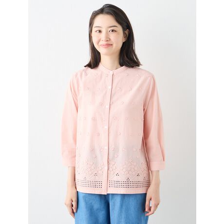 立体的なフラワーモチーフ刺繍が施されたブラウス。裾にはサークルモチーフの刺繍を入れた価値のある1枚。レースの高級感がふんだんに楽しめるアイテムです。綿素材で着心地も良い、特別な1枚です。清楚な白と華やかなピンクの2色展開です。