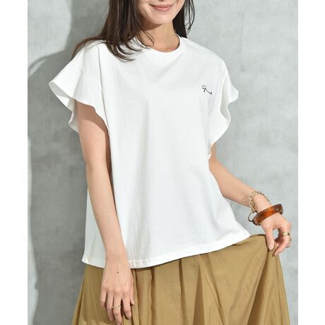 控えめな袖のフリルが大人フェミニンな印象に◎自然に広がる優しいシルエットでスタイリングに迷わない1枚。華奢なロゴ刺繍でさりげなく取り入れた大人っぽい着こなしに◎1ランクアップした大人のカジュアルスタイルを完成させてくれる優秀なアイテムです。