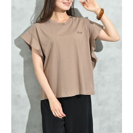 控えめな袖のフリルが大人フェミニンな印象に◎自然に広がる優しいシルエットでスタイリングに迷わない1枚。華奢なロゴ刺繍でさりげなく取り入れた大人っぽい着こなしに◎1ランクアップした大人のカジュアルスタイルを完成させてくれる優秀なアイテムです。