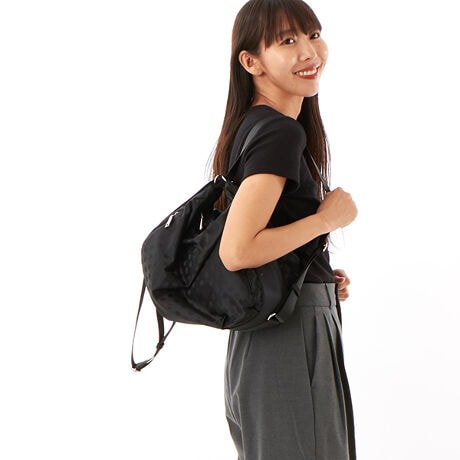 ショルダーストラップをサイドに引っ張るだけでリュックに、上へ引っ張るだけでワンショルダーバッグになる2WAY仕様なので、