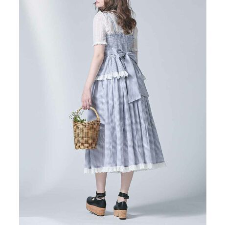 【洗える】ギンガムチェックティアードキャミワンピース