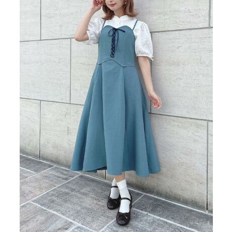 【洗える】フロント レースアップ コルセット キャミ ワンピース / F&A