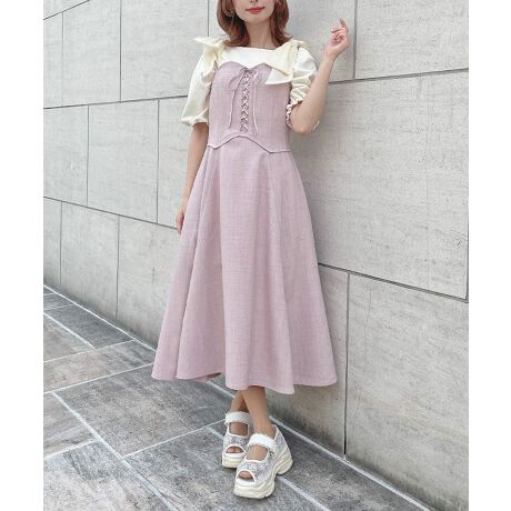 フロントのレースアップがガーリーなキャミワンピース。