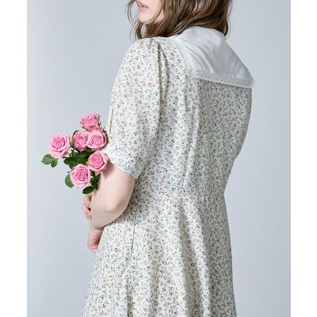 【洗える】ハンカチ開衿小花柄ワンピース