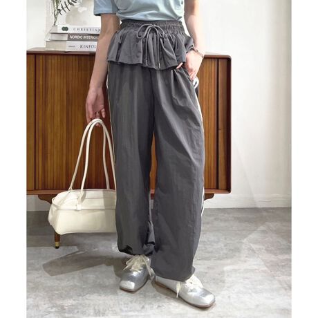 サイドラインが入ったナイロンMIXのシャカシャカパンツ。