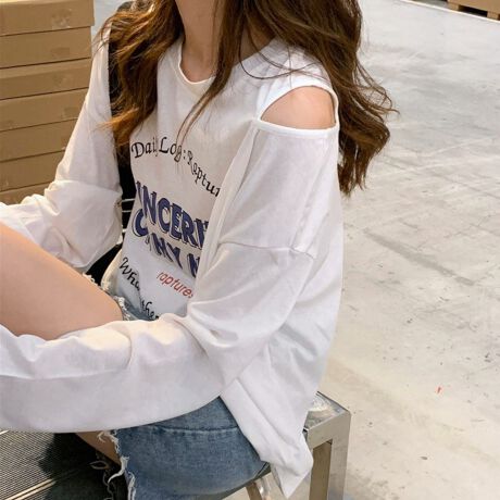 秋冬らしい軽やかさを感じるロゴプリントの長袖Tシャツ。<br>