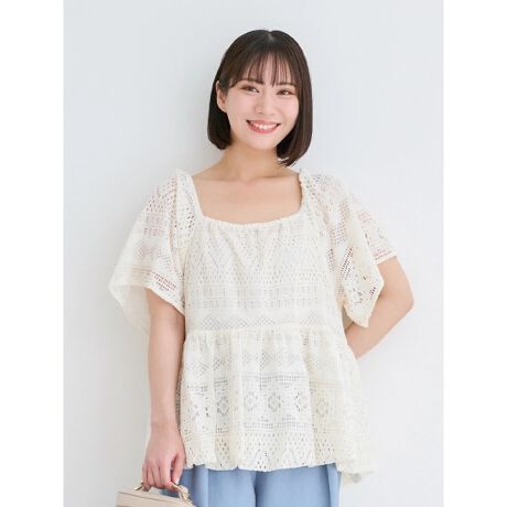 レースが作る透け感が涼しげなスモックブラウス。