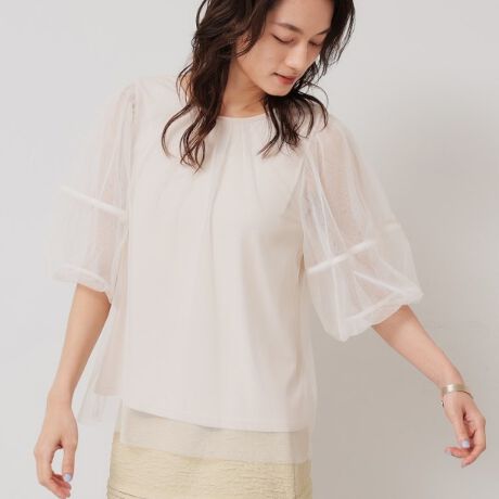 肌触りの良いジャージにチュールをレイヤードしたプルオーバー。