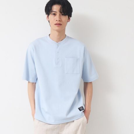 柔らかいコットンスムース素材を使用したヘンリーネックTシャツ。