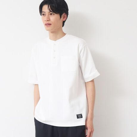 柔らかいコットンスムース素材を使用したヘンリーネックTシャツ。