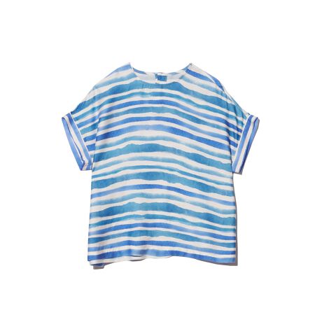 ハンドペイントのようなボーダープリントのブラウスです。