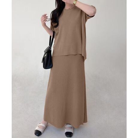 スカートはIラインシルエットで、縦ラインを強調しスタイルアップ効果抜群。