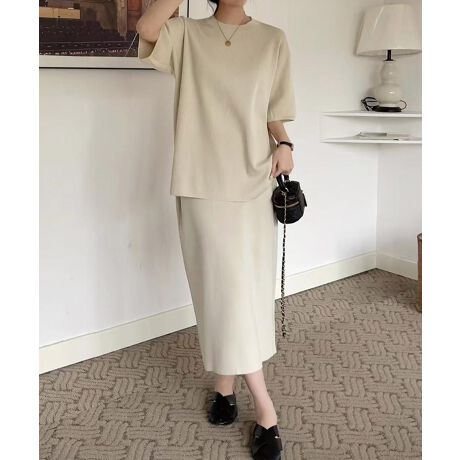 トップスは程よいゆとりで体型カバーも叶い、スカートはすっきりとしたIラインでスタイルアップ効果も◎。セットではもちろん、それぞれ単品使いも可能で着回し力抜群。